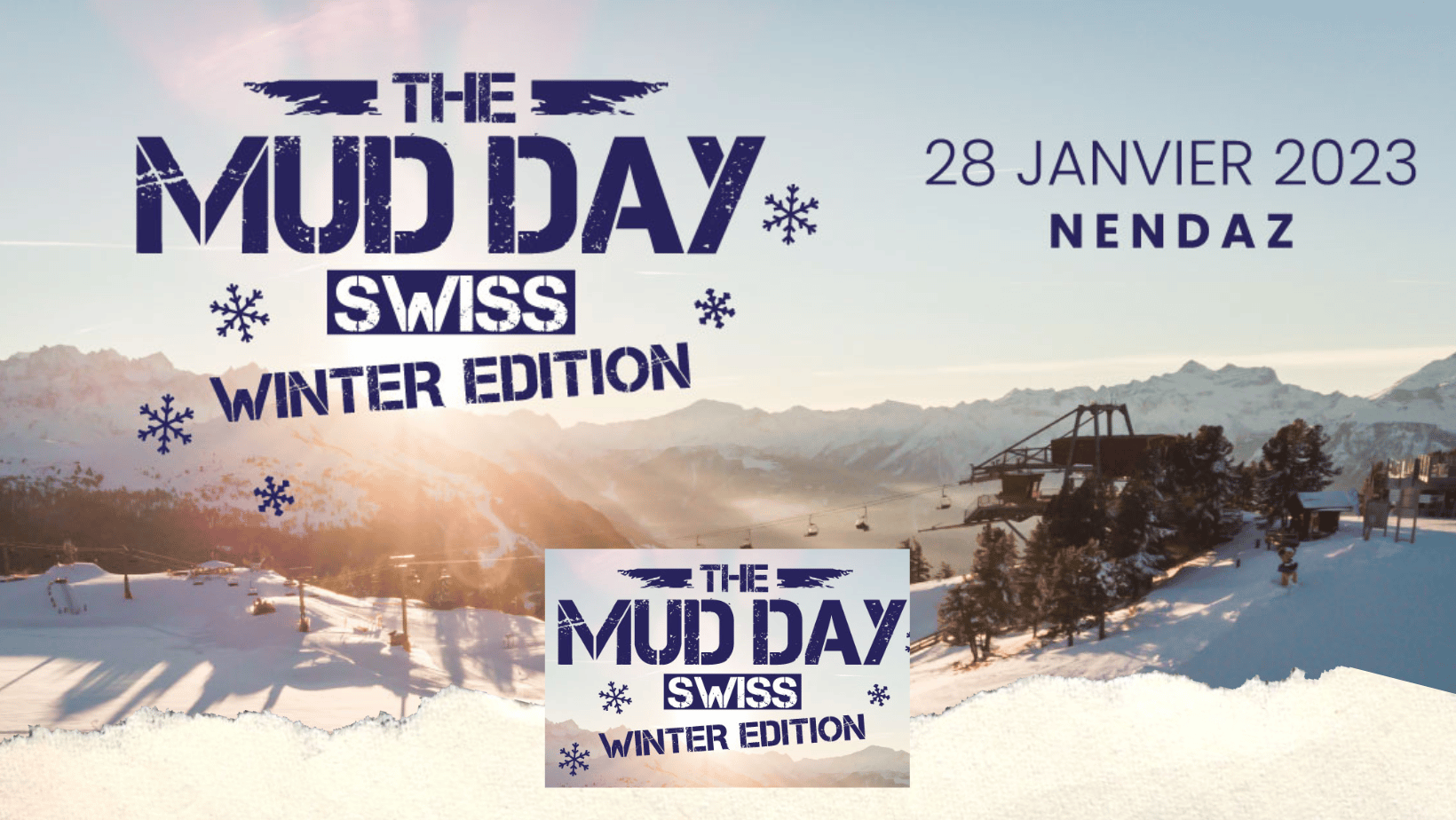 Pour la deuxieme fois en Suisse, une Winter édition, les Mud Guys n’auront pas de la boue mais cette fois-ci de la neige. courir a 2200 m et dans la neige ne seront pas une chose facile donc un plaisir d’autant plus grand de passer la ligne d’arrivée.