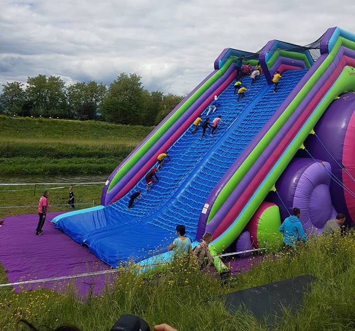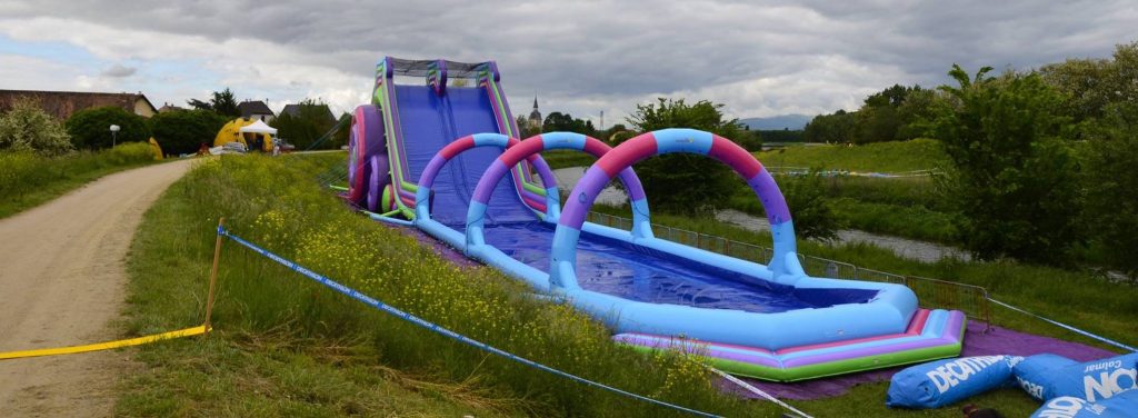 Parmi les obstacles, très variés, de l’épreuve, l’organisateur avait mis en place un obstacle unique avec un toboggan gonflable de 11 mètres de haut et de 60 mètres de long !