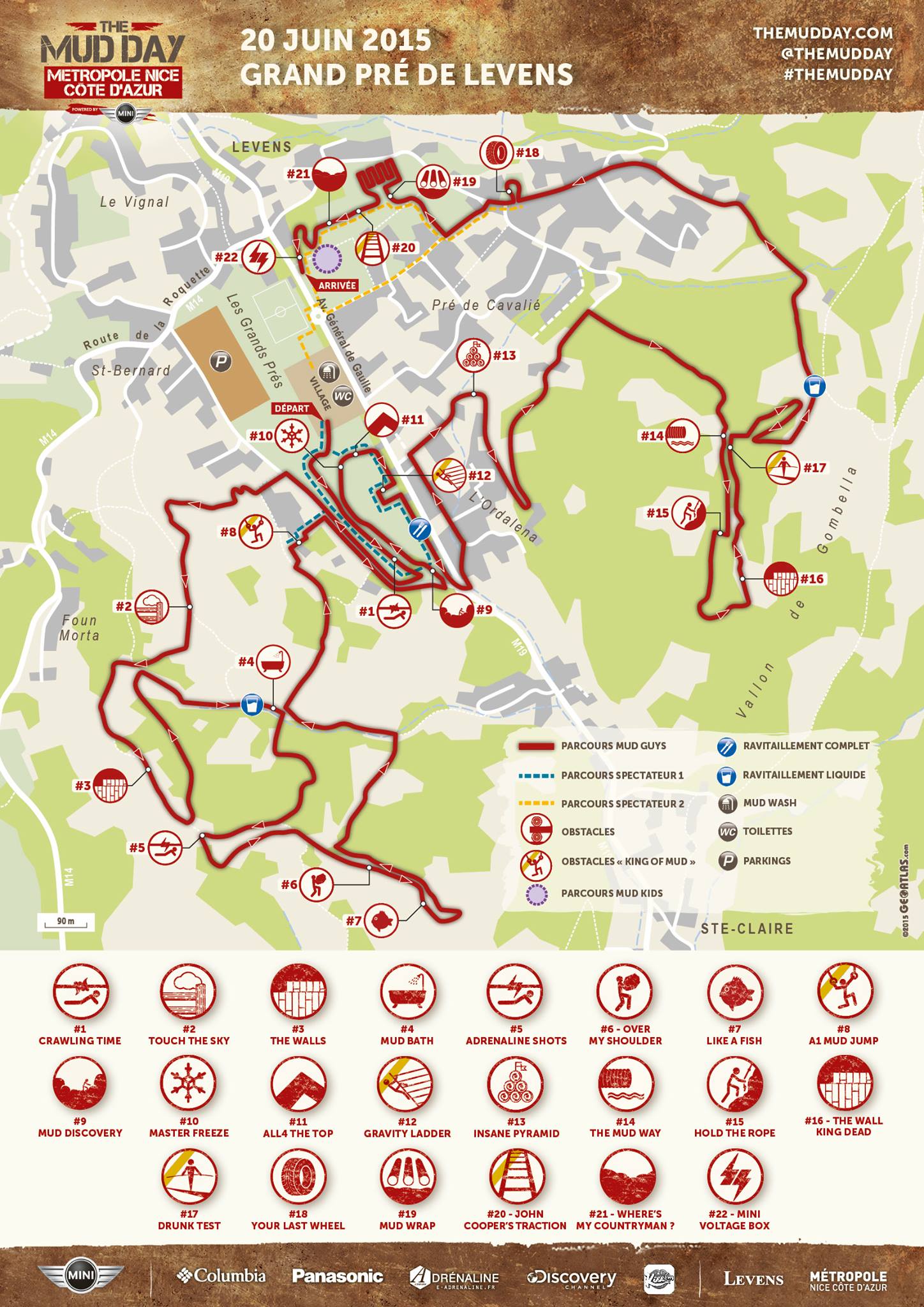Samedi 20 juin, ce sont 8000 personnes qui sont attendues à Levens dans la Métropole Nice Côte d’Azur pour une nouvelle étape de cette saison 2015 The Mud Day powered by MINI. En plus des treize kilomètres et vingt-deux obstacles à affronter, les participants devront faire face à une nouvelle difficulté : un vrai dénivelé qui fatiguera encore plus les organismes.