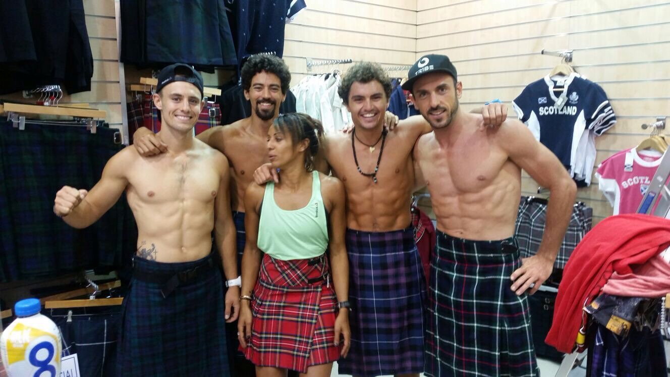 7h45 : Qui dit Écosse, dit Kilt. Les français se sont bien amusés hier en préparant leur course. (Photo John Rezzonico)