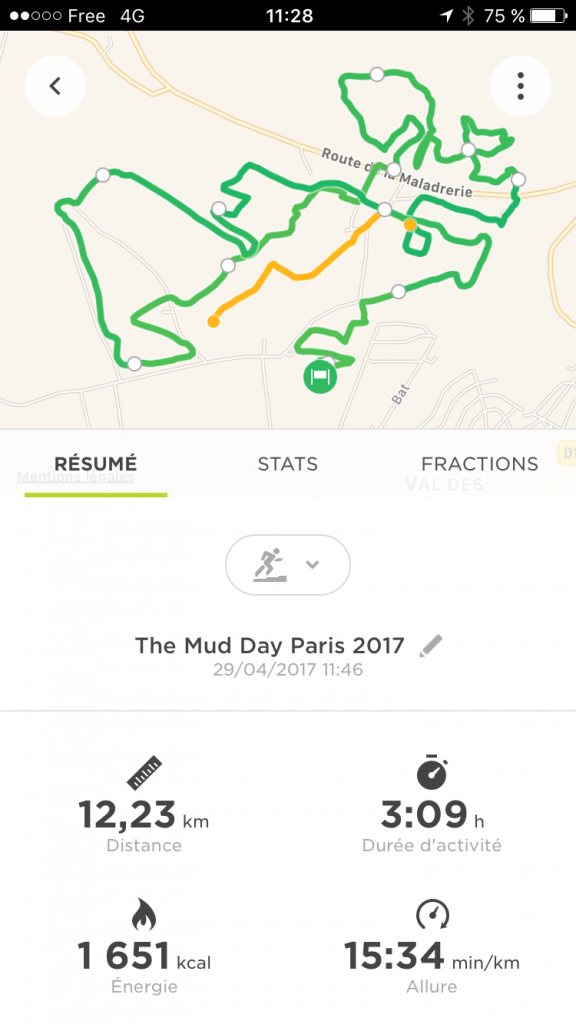 Voici le résultat avec le parcours de ce week-end (erreur de débutant, j’ai déclenché que 800m après le départ)