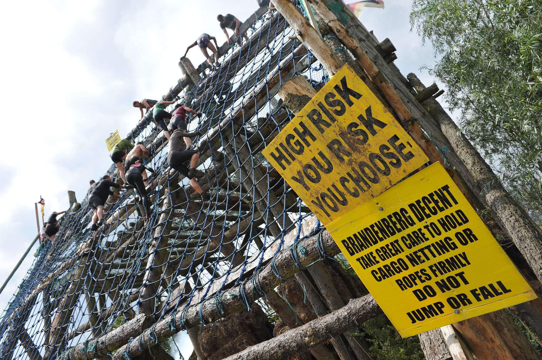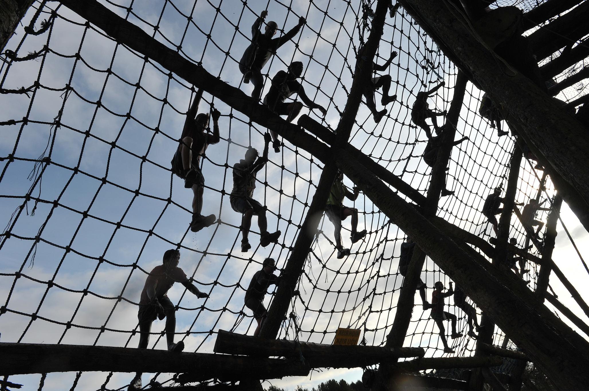 Face à eux se dressent des obstacles de bois, de corde, de métal, de feu, d’électricité, d’eau et de glace. Le premier obstacle majeur : The Tiger est une succession de deux gigantesques structures en forme de A à grimper. Entre les deux, des rangs de fils électriques viennent réveiller les organismes qui n’avaient pourtant pas besoin de cela. Sauts de quatre mètres, tunnels immergés, ramper sous le feu… autant d’obstacles extrêmes qu’il faut vaincre.